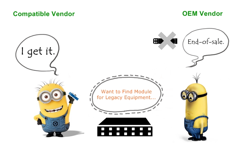 Il est difficile de trouver les modules compatibles avec l'équipement vieux de commutation auprès des fabricants OEM, mais les vendeurs des modules compatibles sont capables de fournir des produits qui soutiennent le vieux système et l'équipement OEM obsolète.