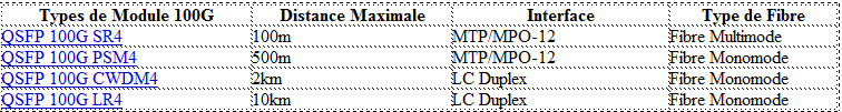 Mots-Clés : module qsfp28 100g et câble breakout qsfp28, qsfp+ 40g, mtp mpo, lc